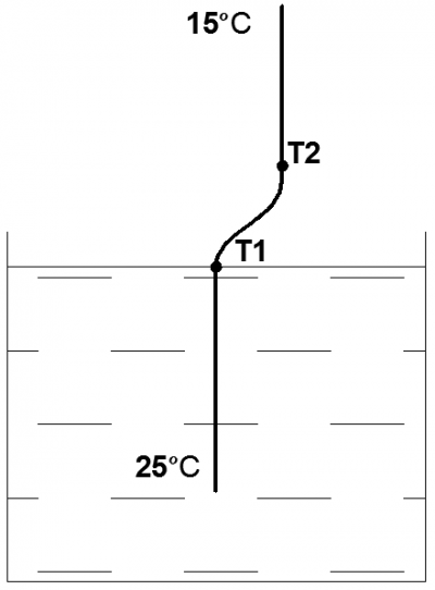 Water temperature is 25 ºC and outside of the tank, air temperature is 15 ºC.