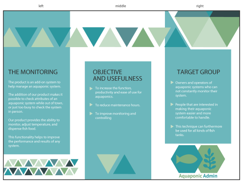 In the end the decision was made that our product would have the name: Aquaponic Admin. Aquaponic is referring to the aquaponic system and Admin is referring to administrator. This product name is chosen over the other ones by reason of it's very clear in what it has to represent and it has a flowing sound because both words start with the same letter.